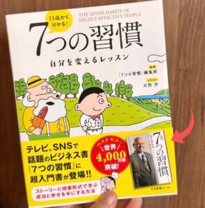 この「7つの習慣」は世界的ベストセラーになったビジネス書に書かれた内容です📕